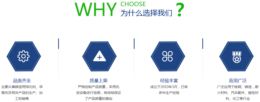 江蘇旦晨新材料科技有限公司、鎮(zhèn)江市勤成鑄造材料有限公司于2010年3月,成立于美麗的水上花園城市—江蘇揚中,公司是一股份制企業(yè),注冊資本為200萬人民幣,主要從事鑄造用球化劑、孕育劑及相關(guān)產(chǎn)品的生產(chǎn)、加工和銷售。 公司引進日本企業(yè)的生產(chǎn)管理模式,半自動化生產(chǎn)方式。目前生產(chǎn)能力:球化劑250T/月、孕育劑300T/月、鑄造相關(guān)品200T/月。為嚴格控制產(chǎn)品質(zhì)量,公司采用國內(nèi)的ICP-AES等離子體發(fā)射光譜儀對采購原